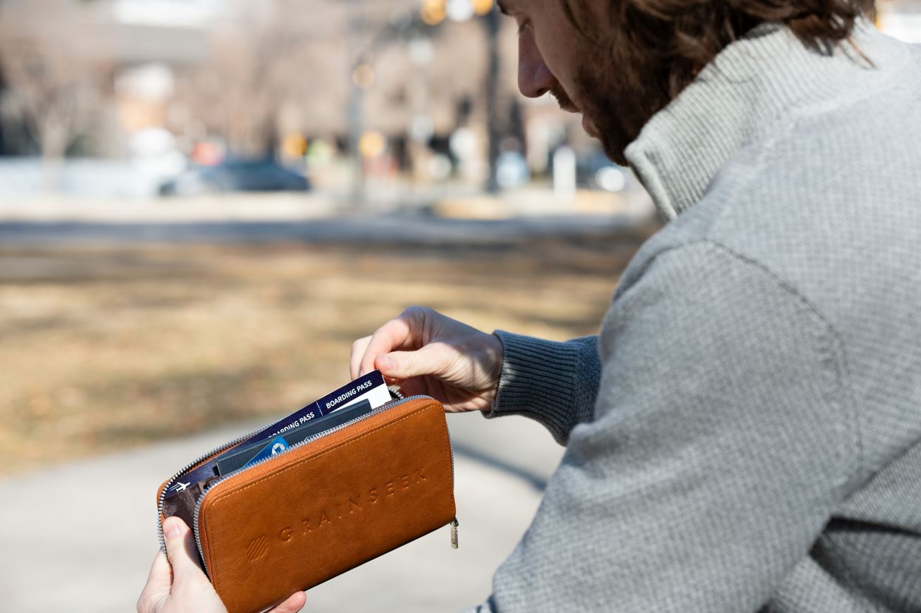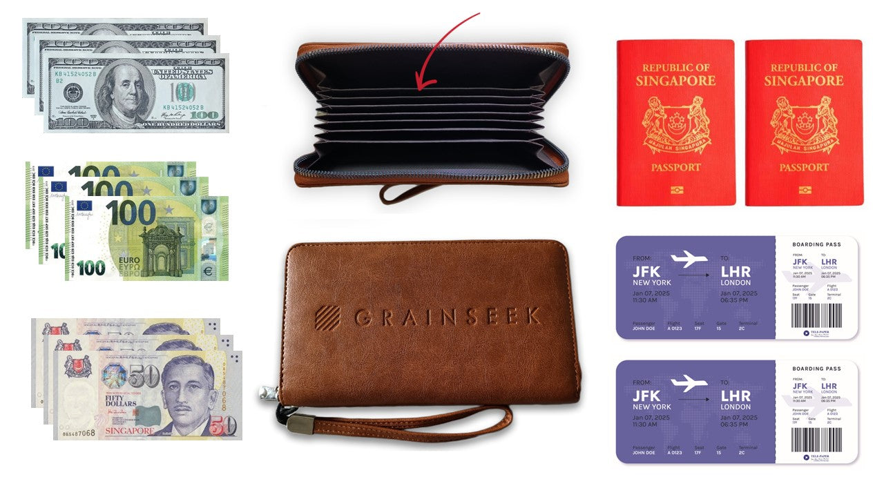 Grainseek Travel Wallet allows you to keep and organize cash of various currencies and denominations and other travel essentials